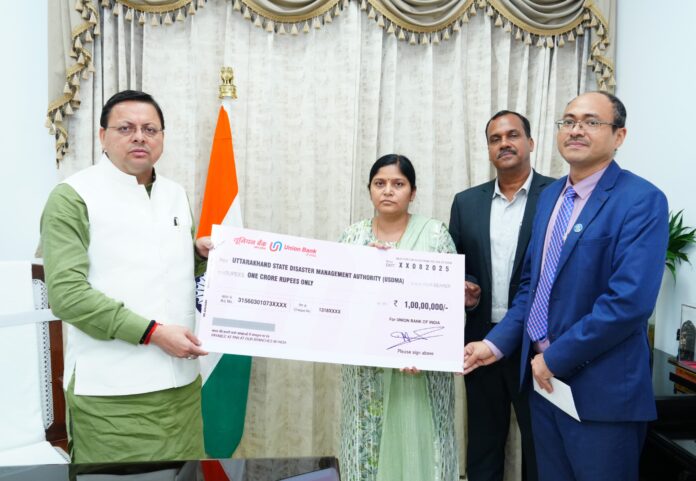 देहरादून 13 अगस्त। मुख्यमंत्री श्री पुष्कर सिंह धामी से बुधवार को मुख्यमंत्री आवास में यूनियन बैंक ऑफ़ इंडिया के प्रतिनिधिमंडल ने भेंट की। इस दौरान यूनियन बैंक ऑफ़ इंडिया द्वारा उत्तरकाशी जिले के धराली एवं हर्षिल क्षेत्र में आई आपदा के राहत कार्यों के लिए ₹ 1 करोड़ की धनराशि का योगदान दिया गया।