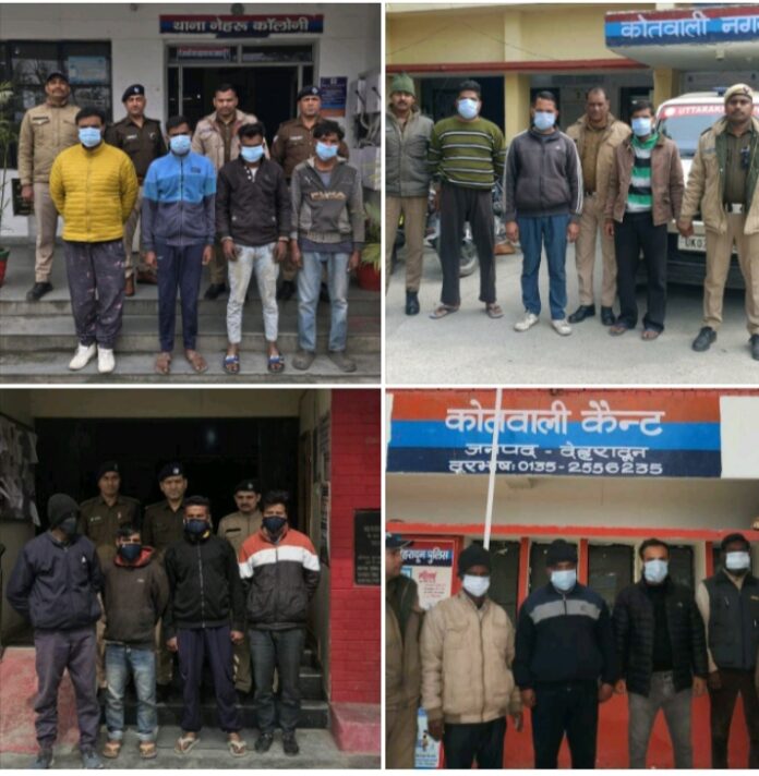 देहरादून 18 फरवरी। मां0 न्यायालय से प्राप्त गैर जमानती वारंटो की शत प्रतिशत तामीली हेतु वरिष्ठ पुलिस अधीक्षक देहरादून द्वारा सभी थाना प्रभारियों को आवश्यक निर्देश दिये गये हैं। उक्त निर्देशों के क्रम में दिनांक: 17-02-26 की रात्रि में पुलिस द्वारा अभियान चलाते हुए अलग-अलग थाना क्षेत्रों से विभिन्न प्रकरणों में फरार चल रहे 27 वारंटी अभियुक्तों को गिरफ्तार किया गया। *जिनका विवरण निम्नवत है:*