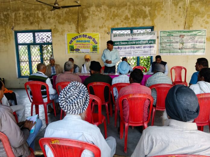 काशीपुर 17 नवंबर। गन्ना किसान संस्थान एवं प्रशिक्षण केंद्र काशीपुर द्वारा काशीपुर परिक्षेत्र के ग्राम गांधीनगर में एकदिवसीय कृषक गोष्टी का आयोजन किया गया ! गोष्टी को संबोधित करते हुए गन्ना विभाग के प्रचार एवं जनसंपर्क अधिकारी श्री नीलेश कुमार ने नव घोषित सट्टा नीति के विषय में किसानों को अवगत कराया। उन्होंने बताया कि शरद कालीन गन्ना बुवाई का समय है। गन्ना किसान अपनी खेत की अच्छी सी तैयारी कर ले! जिन गन्ना किसानों को शरद कालीन गन्ना की बुवाई करनी है वह उत्तम बीज का चुनाव करें। । प्रत्येक गन्ना कृषक अपनी खेत का निरीक्षण करें तथा जो भी बीमारी के लक्षण उसमें पाए जाए उसका फोटो लेकर गन्ना शोध केंद्र के वैज्ञानिकों के को प्रेषित करें जिससे कि उसे फोन पर ही तत्काल सहायता उपलब्ध कर दी जाएगी।प्रत्येक कृषक को नवीनतम तकनीक के आधार पर गन्ना की कृषि की जानी चाहिए !हमें अपनी भूमि की जांच करानी चाहिए! भूमि में 16 प्रकार के सूक्ष्म पोषक तत्व पाए जाते हैं ! अतः जांच करने पर हमें पता चलेगा कि हमारी भूमि में कौन सी तत्व की कमी है तथा उसकी पूर्ति करने से हमारे जमीन की गुणवत्ता में वृद्धि होगी! इस गोष्ठी का उद्देश्य गन्ना कृषकों को उन्नत प्रजाति की गन्ना बीज की जानकारी, गन्ने की फसल में लगने वाली तरह-तरह के बीमारियों तथा उसमें प्रयोग की जाने वाली दवाईयां तथा उनको गन्ने की वैज्ञानिक विधि से कृषि कैसे करें जिससे की प्रति हैक्टेयर उत्पादकता बढ़े इसकी जानकारी कृषकों को प्रदान करना है ! गना शोध परिषद के वैज्ञानिकों द्वारा उन्हें इस संबंध में वार्ता कर इस संबंध में जानकारी प्रदान की जाती है !इस गोष्ठी में प्रतिभाग करते हुए गन्ना अनुसंधान केंद्र के वैज्ञानिक अधिकारियों द्वारा बताया गया कि वर्तमान में 15023. , 13235, 14201 जैसी उन्नतशील प्रजातियां है जिनको गना कृषकों को प्रोत्साहित करना चाहिए! वर्तमान में 0238 रेड रोड की चपेट में आ गई है अतः कृषक बंधुओ से अनुरोध है कि इस प्रजाति के गन्ने की बुवाई बिल्कुल भी ना करें है! अतः कृषकों को चाहिए कि वह इसका रिप्लेस करें! वैज्ञानिकों द्वारा कीट एवं रोग प्रबंधन के विषय में भी विस्तार से जानकारी प्रदान की गई। इस बैठक में गन्ना अनुसंधान केंद्र के वैज्ञानिक श्री संजय कुमार , श्री प्रमोद कुमार सहित गन्ना विभाग के अधिकारी तथा कर्मचारी सहित बड़ी संख्या में प्रगतिशील कृषक एवं महिला कृषक मौजूद रहे।