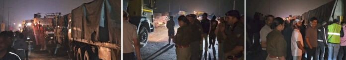 देहरादून 8-9 मार्च। दिनांक-08.03.2026 को रात्रि समय 21.18 बजे के लगभग 112 के माध्यम के कोतवाली रायवाला को सूचना प्राप्त हुई की होटल गोडविन के सामने मोतीचूर फ्लाई ओवर के ऊपर रायवाला से हरिद्वार की ओर उत्तराखण्ड रोडवेज की बस वाहन स0- UK 04 PA1678 व टैक्टर ट्राली स्वराज-735 की टक्कर हो गयी है व पीछे से आ रही स्कार्पियो एन की दुर्घटनाग्रस्त वाहनो मे टक्कर लगने से स्कार्पियो एन कार मे आग लग गयी जिसमे कई अन्य वाहन 1- HR46 E0605 ‘ट्रोला, 2-UK 07 HC 5084 XUV300 कार, आग की चपेट मे आने से क्षतिग्रस्त हो गए, संभवत महिंद्र स्कॉर्पियो के सीएनजी सिलेंडर के ब्लास्ट होने के कारण उक्त स्कॉर्पियो वाहन में आग लग गई जिससे अन्य वाहन भी आग की चपेट में आ गए। उक्त दुर्घटना मे एक महिला श्रीमती कुसुम पत्नी सचिन निवासी भोगपुर नजीबाबाद,जिला बिजनौर उ0प्र0 उम्र-30 वर्ष की ट्रोले के टायरो के नीचे आने के कारण मौके पर ही मृत्यु हो गयी है। व कई अन्य व्यक्ति घायल हुए, पुलिस व दमकल कर्मियों द्वारा तत्काल मौके पर पहुंचकर घायलों को राजकीय चिकित्सालय हरिद्वार भेजा गया, व वाहनों में लगी आग को बुझाकर गया, दुर्घटनाग्रस्त वाहनों को साइड कर यातायात सुचारु किया गया।