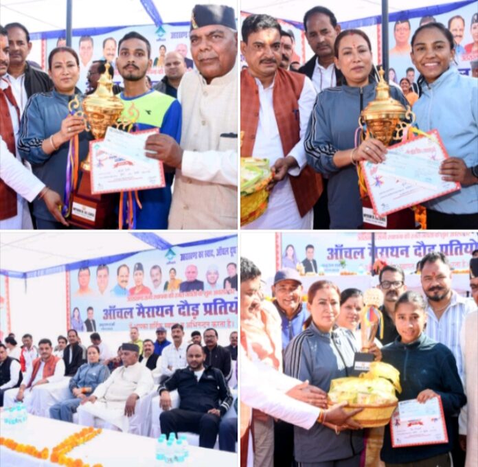 मैराथन दौड़ में बालक और बालिका वर्ग में पूजा बिष्ट और नीरज नेगी प्रथम स्थान पर रहे, जबकि मेघा गोस्वामी और तुषार ने दूसरा स्थान हासिल किया । अनु भट्ट और सौरभ रावत तीसरे स्थान पर रहे । इन सभी को मुख्य अतिथि कैबिनेट मंत्री रेखा आर्या ने सम्मानित किया।
