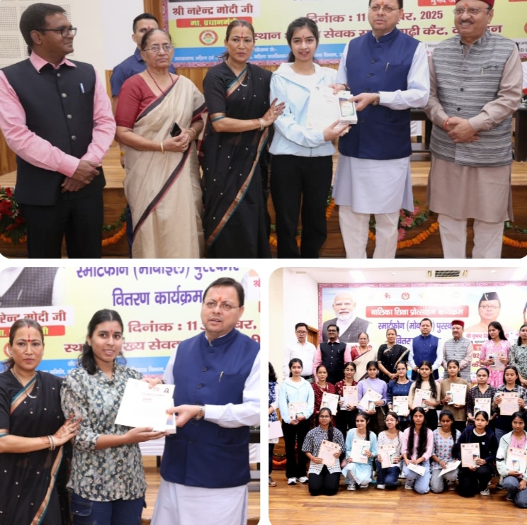 देहरादून, 11 अक्टूबर। शनिवार को मुख्यमंत्री और महिला सशक्तिकरण एवं बाल विकास मंत्री ने पूरे प्रदेश के सभी जिलों से आई 2024 और 2025 की बोर्ड परीक्षाओं में अव्वल रही 326 मेधावी बालिकाओं को पुरस्कार स्वरूप मोबाइल फोन भेंट किया। मुख्य सेवक सदन, गढ़ी कैंट में अंतरराष्ट्रीय बालिका दिवस के अवसर पर ‘बालिका शिक्षा प्रोत्साहन कार्यक्रम’ का भव्य आयोजन किया गया।