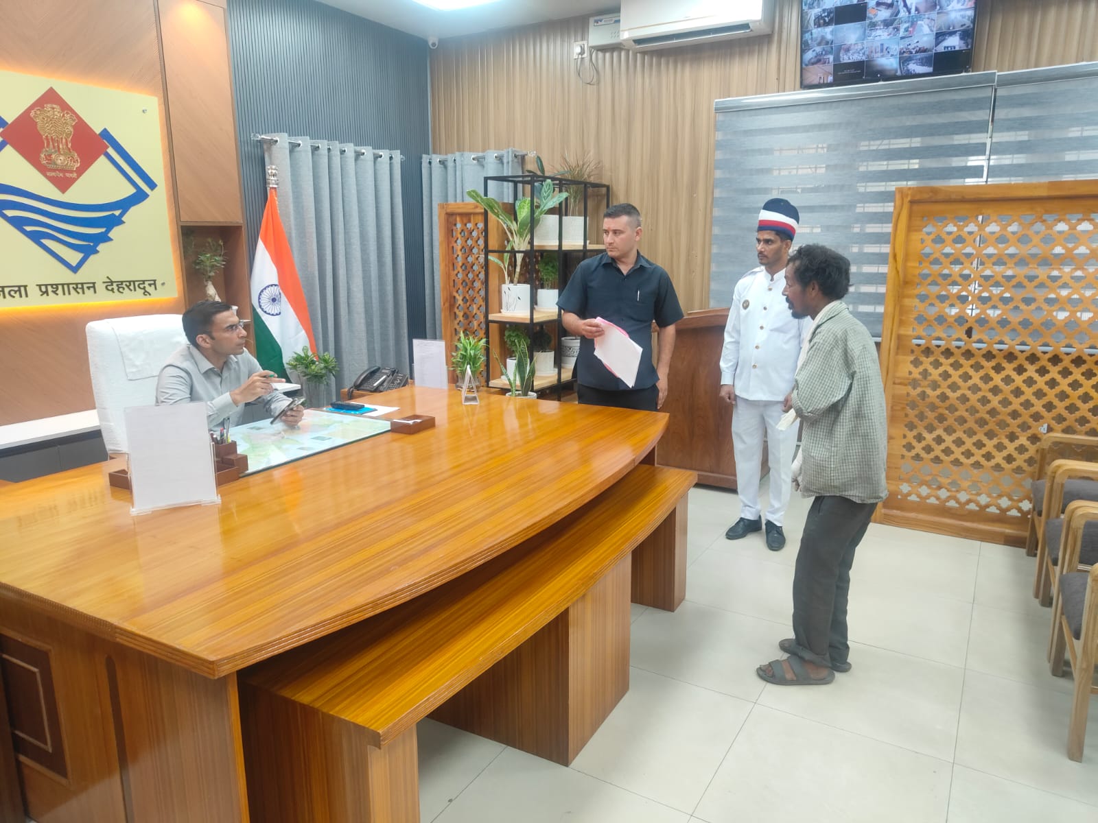 विगत दिवस कलेक्टेªट परिसर में असहाय राजू पंहुचा जिसका एक हाथ बुरी तरह से जला हुआ था। राजू ने जिलाधिकारी को अपनी पीड़ा सुनाते हुए बताया कि वह होटल में मजदूरी कराता है तथा चमोली में उसका गर्म पानी से जल गया, दून अस्पताल ने हायर सेंटर को रेफर कर दिया है, उसके पास उपचार के लिए पैसे नही है। जिस पर जिलाधिकारी संविन बसंल ने बर्न स्पेशलिस्ट निजी चिकित्सालय से दूरभाष पर वार्ता करते हुए राजू के उपचार का अनुरोध किया जिस हेल्पिंग हेंड हॉस्पिटल के डॉ कुश ने राजू को तत्काल हास्पिटल भेजने को कहा। जिला प्रशासन ने सारथी वाहन से राजू को चिकित्सालय में भर्ती कराया।