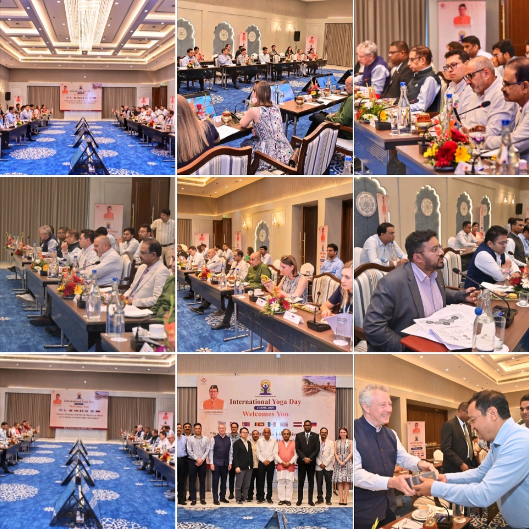 अंतर्राष्ट्रीय योग दिवस के अवसर पर उत्तराखंड आए विभिन्न देशों के राजदूत / उच्चायुक्त/ प्रतिनिधियों के साथ निवेश आयुष, पर्यटन एवं संस्कृति पर विस्तृत रणनीतिक चर्चा से संबंधित बैठक हरिद्वार में आयोजित की गई । बैठक में मेक्सिको, फिजी,नेपाल, सूरीनाम, मंगोलिया, लातविया, श्रीलंका और रूस के राजनयिक व अन्य उच्च अधिकारियों के साथ ही उत्तराखंड सरकार की ओर से उपाध्यक्ष उत्तराखंड राज्य आपदा प्रबंधन श्री विनय रुहेला, सचिव श्री सचिन कुर्वे, श्री धीराज गबर्याल, श्री जुगल किशोर पंत, अपर सचिव श्री अभिषेक रोहिल्ला श्री विजय कुमार जोगदंडे, तथा उद्योग, आयुष, पर्यटन व संस्कृति विभाग के अधिकारी मौजूद रहे।