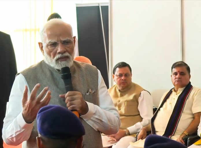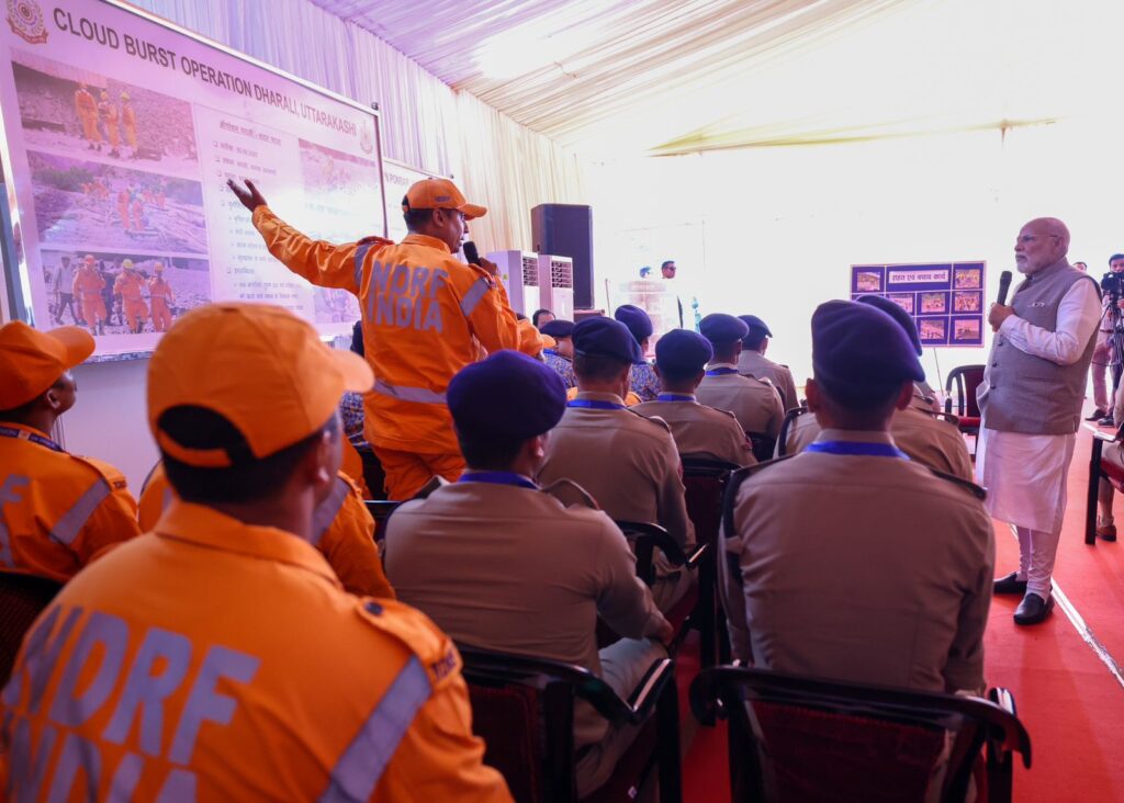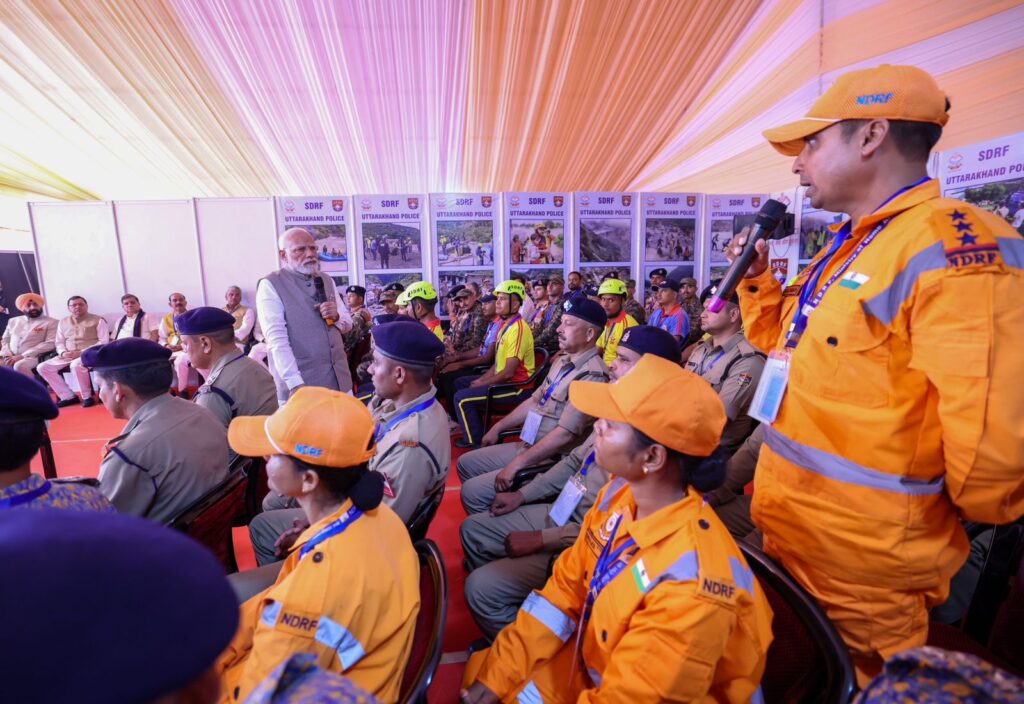 देहरादून 11 सितंबर। उत्तराखंड में प्राकृतिक आपदा से हुए नुकसान का जायजा लेने पहुंचे प्रधानमंत्री श्री नरेंद्र मोदी ने गुरुवार को जौलीग्रांट एअरपोर्ट पर आपदा राहत कार्यों की गहन समीक्षा की। प्रधानमंत्री ने इस दौरान अलग-अलग क्षेत्रों में आपदा से हुए नुकसान का विस्तार से जानकारी लेने के साथ ही राहत एवं बचाव कार्यों की ताजा स्थिति और भविष्य की चुनौतियों पर राज्यपाल ले.ज. गुरमीत सिंह (से.नि.), मुख्यमंत्री श्री पुष्कर सिंह धामी, केन्द्रीय राज्य मंत्री अजय टम्टा तथा राज्य के सांसदों सहित वरिष्ठ अधिकारियों के साथ विचार-विमर्श किया। प्रधानमंत्री श्री नरेंद्र मोदी ने धराली, थराली सहित राज्य के आपदा प्रभावित अन्य क्षेत्रों में संचालित राहत एवं बचाव अभियानों में एनडीआरएफ, एसडीआरएफ सहित राज्य सरकार के विभिन्न विभागों के प्रयासों की सराहना की और राहत बचाव कार्यों में जुटे राज्य व केन्द्र सरकार के संगठनों के कार्मिकों से भेंट कर उनके अनुभव साझा किए। प्रधानमंत्री ने आपदा पीड़ितों से भी मुलाकात कर उनका ढांढस बंधाने के साथ ही समुचित मदद का भरोसा दिलाया।