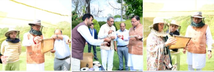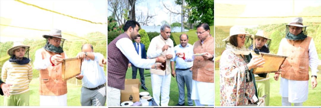 देहरादून 24 मार्च। मुख्यमंत्री आवास परिसर में मंगलवार को शहद निष्कासन कार्य किया गया। पहले चरण में 60 किलोग्राम शहद निकाला गया। मुख्यमंत्री श्री पुष्कर सिंह धामी ने उद्यान विभाग के अधिकारियों को निर्देश दिये कि मुख्यमंत्री आवास परिसर एवं आस-पास के क्षेत्र में 3-बी गार्डन (बी- फ्रेंडली गार्डन, बटर – फ्लाई फ्रेंडली गार्डन एवं बर्ड फ्रेंडली गार्डन) विकसित करने की दिशा में कार्य किये जाएं।
