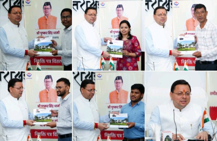 देहरादून 18 अक्टूबर। मुख्यमंत्री श्री पुष्कर सिंह धामी ने आज मुख्यमंत्री आवास स्थित कैंप कार्यालय में राजस्व परिषद में नव-चयनित सहायक समीक्षा अधिकारी एवं समीक्षा अधिकारियों को नियुक्ति पत्र वितरित किए।