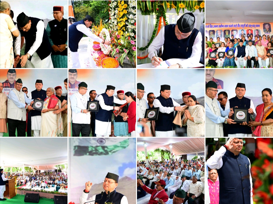 देहरादून 26 जुलाई। मुख्यमंत्री श्री पुष्कर सिंह धामी ने शनिवार को गांधी पार्क, देहरादून में कारगिल विजय दिवस (शौर्य दिवस) के अवसर पर शहीद स्मारक पर पुष्प चक्र अर्पित कर कारगिल शहीदों को श्रद्धांजलि दी। मुख्यमंत्री ने इस अवसर पर कारगिल शहीदों के परिवारजनों को भी सम्मानित किया।