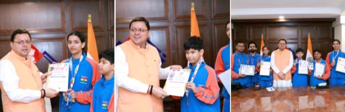 मुख्यमंत्री ने उत्तराखंड के कराटे चैंपियन्स को किया सम्मानित।