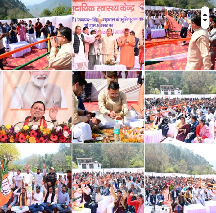 टिहरी 26 फरवरी। मुख्यमंत्री श्री पुष्कर सिंह धामी ने गुरूवार को जनपद टिहरी के घनसाली में 41.21 करोड़ की विभिन्न विकास योजनाओं का लोकार्पण एवं शिलान्यास किया, जिसमें 13.43 करोड़ रूपए की 03 योजनाओं का लोकार्पण एवं 27.78 करोड़ रूपए की 05 योजनाओं का शिलान्यास शामिल है। साथ ही प्राथमिक स्वास्थ्य केन्द्र, पिलखी को सामुदायिक स्वास्थ्य केन्द्र के रूप में उच्चीकरण किये जाने का भी शिलान्यास किया। इस अवसर पर मुख्यमंत्री ने अस्पताल हेतु भूमि दान करने वाले कृष्णा गैरोला एवं उनके परिवार को भी सम्मानित किया।