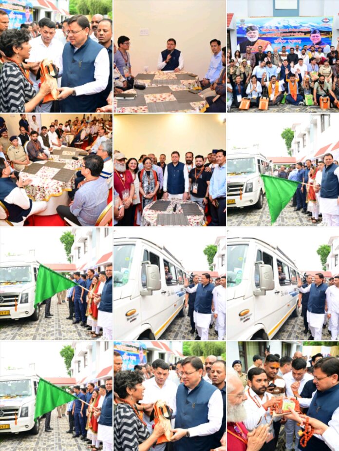 टनकपुर 5 जुलाई। मुख्यमंत्री श्री पुष्कर सिंह धामी ने शनिवार को टनकपुर स्थित पर्यटन आवास गृह से कैलाश मानसरोवर यात्रा के पहले दल को हरी झंडी दिखाकर रवाना किया। इस अवसर पर मुख्यमंत्री ने यात्रियों का पारंपरिक रूप से स्वागत किया तथा उत्तराखंड की सांस्कृतिक धरोहर से जुड़े स्मृति चिह्न भेंट किए।