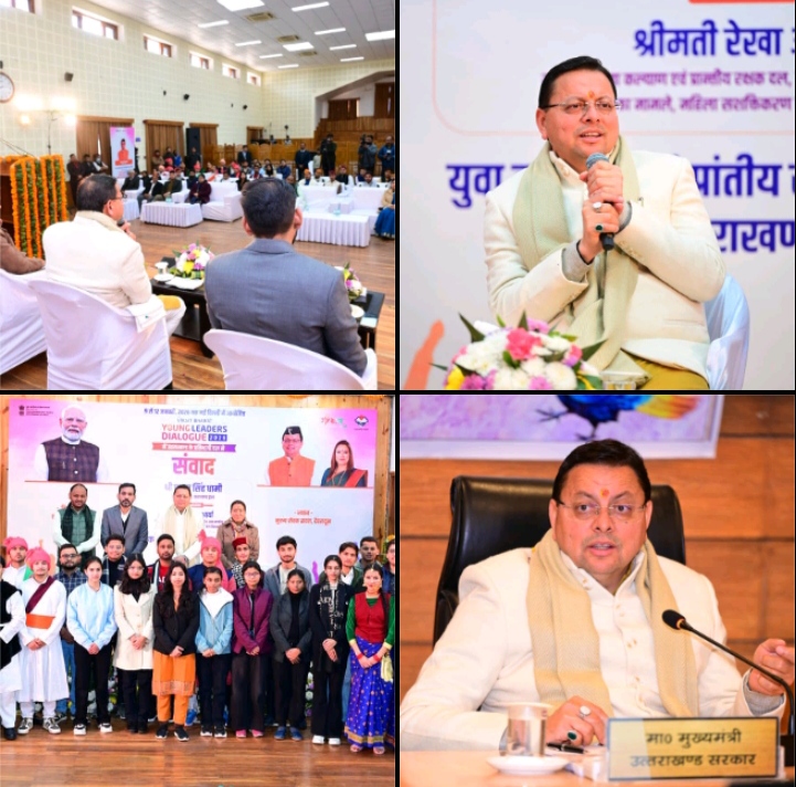 देहरादून 8 जनवरी। मुख्यमंत्री श्री पुष्कर सिंह धामी ने गुरूवार को मुख्यमंत्री आवास स्थित मुख्य सेवक सदन में आयोजित विकसित भारत यंग लीडर्स डायलॉग संवाद कार्यक्रम में प्रतिभाग करते हुए प्रधानमंत्री श्री नरेंद्र मोदी की अभिनव पहल “यंग लीडर्स डायलॉग” की सराहना की। भारत मंडपम नई दिल्ली में 09 से 12 जनवरी तक आयोजित होने वाले इस कार्यक्रम में प्रतिभाग के लिए चयनित युवाओं को हार्दिक शुभकामनाएं देते हुए मुख्यमंत्री ने कहा कि यह पहल देश के युवाओं को नेतृत्व, नवाचार और राष्ट्र निर्माण से जोड़ने का एक सशक्त मंच प्रदान करती है।
