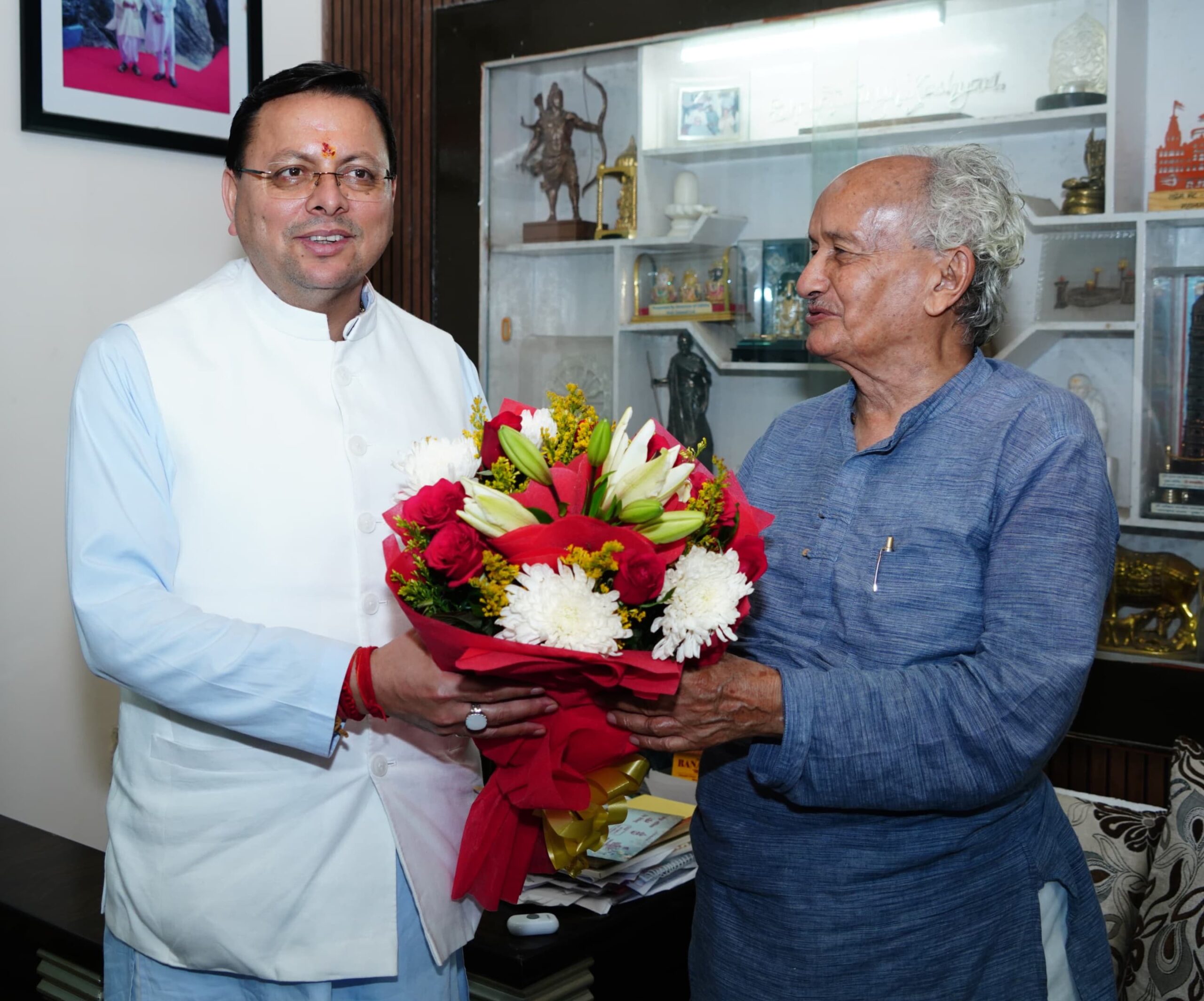 मुख्यमंत्री श्री धामी ने आज पूर्व मुख्यमंत्री एवं महाराष्ट्र के पूर्व राज्यपाल श्री भगत सिंह कोश्यारी से की धनतेरस के शुभ अवसर पर भेंट ।