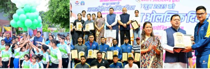 23 जून। मुख्यमंत्री श्री पुष्कर सिंह धामी ने सोमवार को अंतरराष्ट्रीय ओलंपिक दिवस के अवसर पर परेड ग्राउंड देहरादून में आयोजित कार्यक्रम में प्रतिभाग किया। इस अवसर पर उन्होंने अन्तरराष्ट्रीय और राष्ट्रीय स्तर पर पदक जीतने वाले खिलाड़ियों को सम्मानित भी किया एवं खिलाड़ियों को खेल भावना की शपथ भी दिलाई। मुख्यमंत्री ने कहा कि यह दिन खेल भावना, एकता और शांति के मूल्यों को समर्पित है। ओलंपिक केवल प्रतिस्पर्धा नहीं, बल्कि समर्पण, साधना और राष्ट्रीय गौरव का प्रतीक हैं।