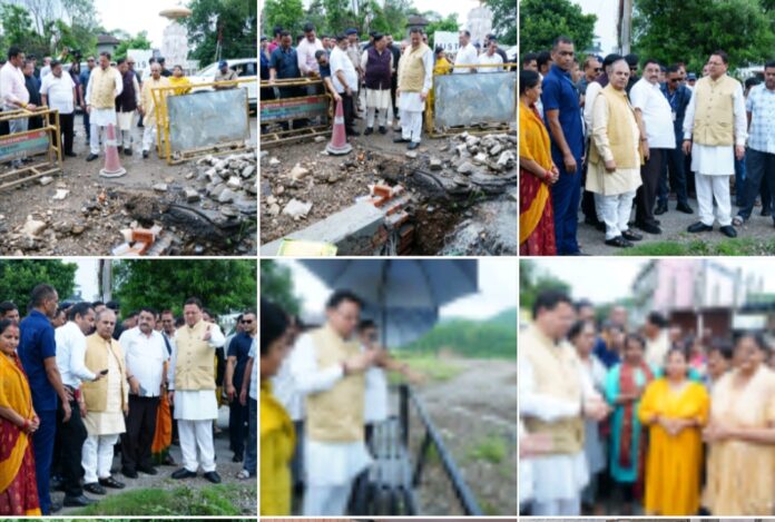 देहरादून 10 जुलाई। मुख्यमंत्री श्री पुष्कर सिंह धामी ने गुरुवार को देहरादून में रायपुर क्षेत्र के अंतर्गत अतिवृष्टि से प्रभावित क्षेत्रों का स्थलीय निरीक्षण किया।