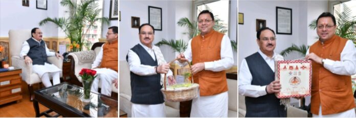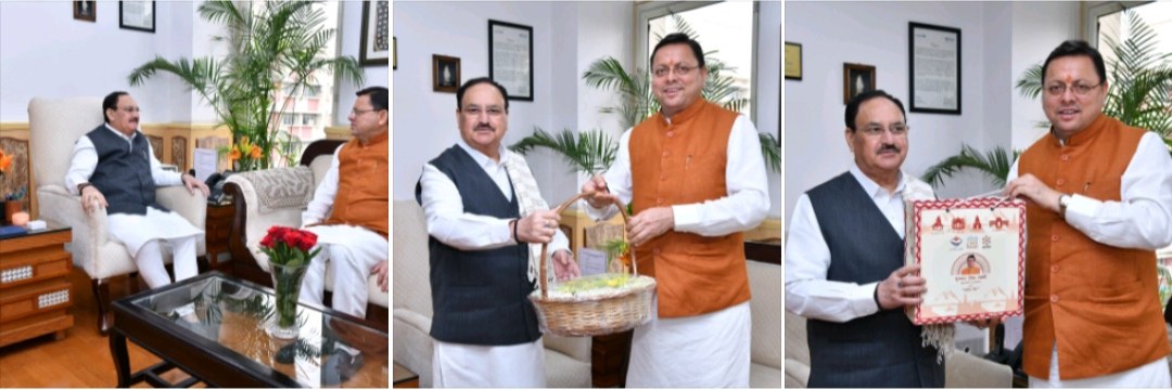 केंद्रीय मंत्री श्री जेपी नड्डा ने मुख्यमंत्री पुष्कर सिंह धामी को हर सम्भव सहयोग के प्रति आश्वस्त किया।
