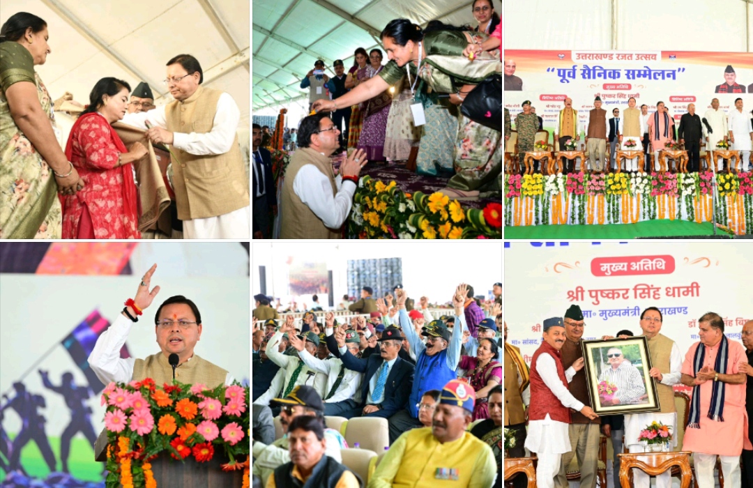 6 नवंबर। मुख्यमंत्री श्री पुष्कर सिंह धामी ने गुरूवार को राज्य स्थापना की रजत जयंती के अवसर पर हल्द्वानी के एम.बी.पी.जी. कॉलेज प्रांगण में आयोजित ‘पूर्व सैनिक सम्मेलन’ का शुभारंभ किया। इस अवसर पर प्रदेशभर से बड़ी संख्या में पूर्व सैनिकों, वीर नारियों, वीरांगनाओं एवं उनके परिजनों द्वारा प्रतिभाग किया गया।