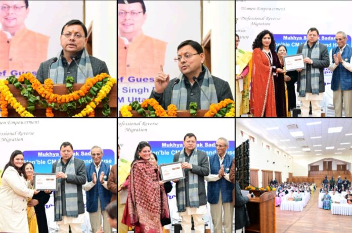 देहरादून 27 दिसंबर। मुख्यमंत्री श्री पुष्कर सिंह धामी ने शनिवार को मुख्य सेवक सदन देहरादून में बिजनेस उत्तरायणी संस्था द्वारा आयोजित Manthon-2025: 5th National Leader’s Summit (Women’s Special) कार्यक्रम में प्रतिभाग किया। इस अवसर पर मुख्यमंत्री ने स्टार्टअप, आत्मनिर्भरता एवं अन्य क्षेत्रों में विशिष्ट कार्य करने वाली महिलाओं को सम्मानित किया।