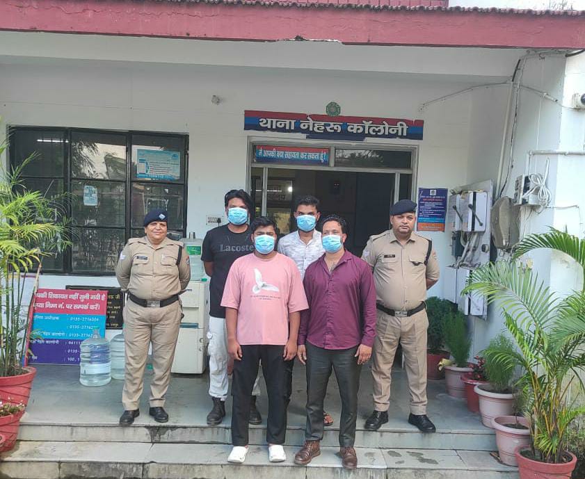 नेहरू कॉलोनी–देहरादून। दिनांक 29/08/2025 को थाना नेहरू कॉलोनी को कंट्रोल रूम के माध्यम से सूचना प्राप्त हुए की विधानसभा के पास ऑफिस में कुछ युवक एक व्यक्ति के साथ मारपीट कर रहे हैं। प्राप्त सूचना पर थाना नेहरू कॉलोनी से पुलिस बल तत्काल मौके पर पहुंचा, जहां कुछ व्यक्तियों द्वारा एक व्यक्ति को अपने ऑफिस में बैठा रखा था। जिनके संबंध में जानकारी करने पर ज्ञात हुआ कि विपक्षियों द्वारा पीड़ित को अपने ऑफिस में बुलाकर, 5 लाख रुपयों की मांग की गई तथा न देने पर जबरन रोककर डरा धमका कर मारपीट,गाली गलौज की जा रही थी। पीड़ित व्यक्ति रिहान पुत्र लियाकत निवासी परवल देहरादून की तहरीर के आधार पर थाना नेहरू कॉलोनी पर मु0अ0सं0 306/25 धारा- 191(2)/126/308(2)/115(2)/352/351(2) बीएनएस पंजीकृत किया गया। पुलिस द्वारा मौके से पीड़ित के साथ मारपीट करने वाले 04 व्यक्तियों को गिरफ्तार किया गया, जिनके विरुद्ध अग्रिम वैधानिक कार्यवाही की गई।
