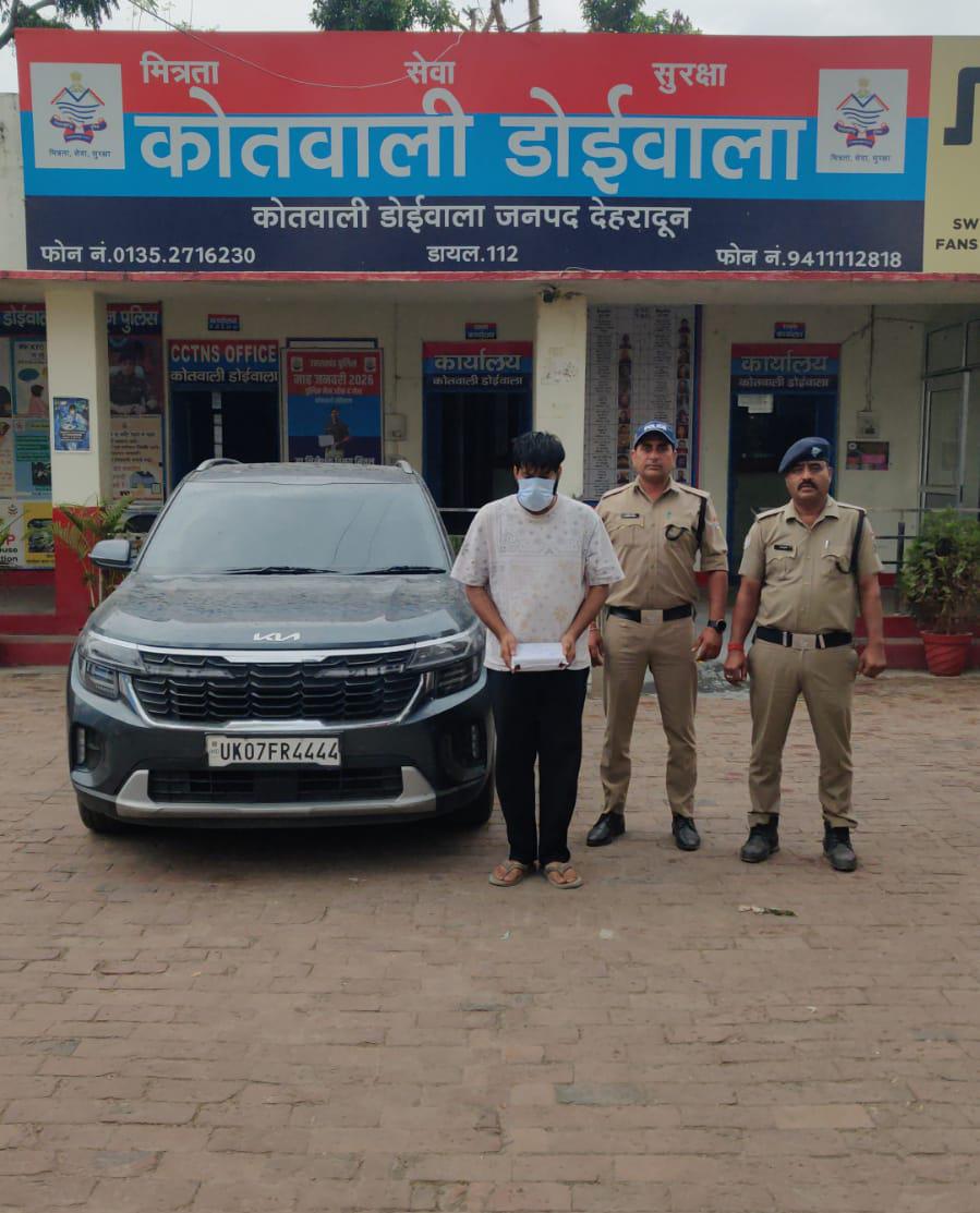 उक्त निर्देशों के क्रम में दून पुलिस द्वारा लगातार नशा तस्करों के विरूद्व प्रभावी कार्यवाही की जा रही है। इसी क्रम में कोतवाली डोईवाला पर नियुक्त पुलिस टीम द्वारा दिनांक 29.03.2026 को चौकी गेट जौलीग्रान्ट, क्षेत्र में चैकिंग के दौरान मुखबिर की सूचना पर एक संदिग्ध कार संख्या -UK07FR-4444 ( KIA) को रोककर चैक किया गया। कार चालक द्वारा अपना नाम रवि गुप्ता पुत्र राकेश गुप्ता बताया गया। संदिग्धता के आधार पर वाहन की सघनता से चैकिंग करने पर अभियुक्त रवि गुप्ता के कब्जे से 310 ग्राम अवैध चरस बरामद हुई। अभियुक्त को मौके से गिरफ्तार करते हुए घटना में प्रयुक्त कार को सीज़ किया गया। अभियुक्त के विरुद्ध कोतवाली डोईवाला पर *मु0अ0सं0-94/2026 धारा 8/20/60 NDPS ACT का अभियोग* पंजीकृत किया गया।