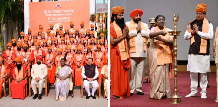 हरिद्वार 2 नवंबर। राष्ट्रपति श्रीमती द्रौपदी मुर्मु ने पतंजलि विश्वविद्यालय हरिद्वार के द्वितीय दीक्षांत समारोह में स्वर्ण पदक प्राप्त विद्यार्थियों को सम्मानित किया। रविवार को आयोजित इस कार्यक्रम में कुल 1454 विद्यार्थियों को उपाधि प्रदान की गई। 62 शोधार्थियों को विद्या वारिधि और 3 शोधार्थियों को विद्या वाचस्पति की उपाधि प्रदान की गई, जबकि 615 विद्यार्थियों को परास्नातक और 774 विद्यार्थियों को स्नातक की उपाधि प्रदान की गई। इस अवसर पर राज्यपाल लेफ्टिनेंट जनरल गुरमीत सिंह (से नि.) ने राष्ट्रपति को राष्ट्रपति भवन की विविध वनस्पतियों पर आधारित दो पुस्तकें ‘फ्लोरा ऑफ राष्ट्रपति भवन’ एवं ‘मेडिसिनल प्लांट्स ऑफ राष्ट्रपति भवन’ की प्रतिलिपियाँ भी भेंट कीं।