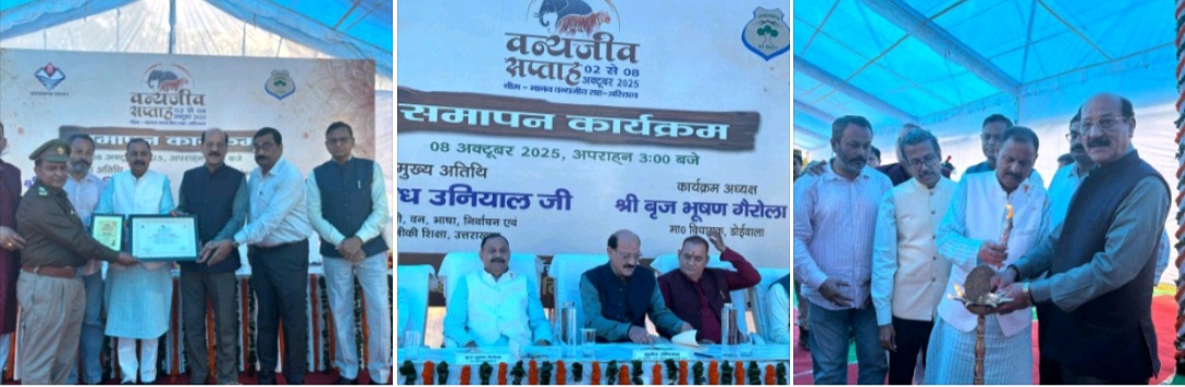 देहरादून, 8 अक्टूबर 2025 – उत्तराखंड सरकार की ओर से मंत्री सुबोध उनियाल ने लच्छीवाला में वन विभाग द्वारा आयोजित “वन्यजीव सप्ताह 2025” के समापन सत्र को संबोधित किया।