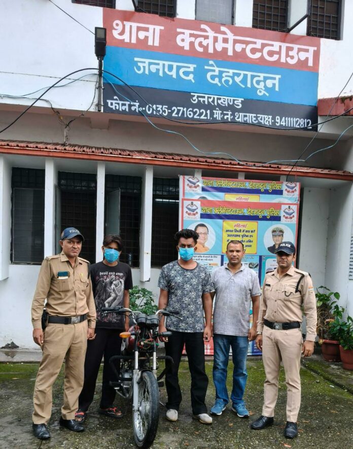पूछताछ में अभियुक्तों द्वारा बताया गया कि वे दोनों नशे के आदी है तथा अपनी नशे की आवश्यकताओं की पूर्ति के लिए उनके द्वारा चोरी की घटना को अंजाम दिया गया था। घटना में चोरी की गयी मोटर साइकिल को अभियुक्त बेचने की फिराक में थे पर उससे पूर्व ही पुलिस टीम द्वारा अभियुक्तों (1– लवी चौहान पुत्र सुभाष चौहान निवासी लेन नम्बर सी-20 ओगल भट्टा, थाना क्लेमेंट टाउन, देहरादून, उम्र- 22 वर्ष
