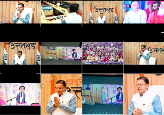 30 जून। मुख्यमंत्री श्री पुष्कर सिंह धामी ने मुख्यमंत्री आवास से भीमगोडा, हरिद्वार में जगदीश स्वरूप विद्यानन्द आश्रम ट्रस्ट द्वारा आयोजित श्रीमद् भागवत सप्ताह ज्ञान यज्ञ-श्रीमद् भागवत कथा को वर्चुअली सम्बोधित किया |
