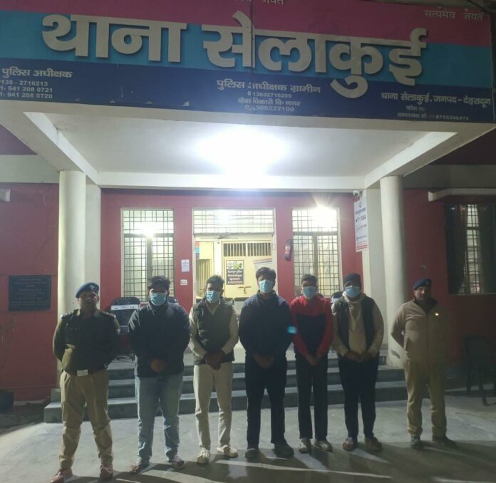 घटना के संबंध में एसएसपी देहरादून द्वारा दिये गए निर्देशों पर सेलाकुई पुलिस द्वारा त्वरित कार्रवाई कर घटना में शामिल अभियुक्तों के संबंध में जानकारी प्राप्त करते हुए 05 अभियुक्तों (1- आयुष पुत्र ओंकार निवासी बनारस उत्तर प्रदेश उम्र 20 वर्ष