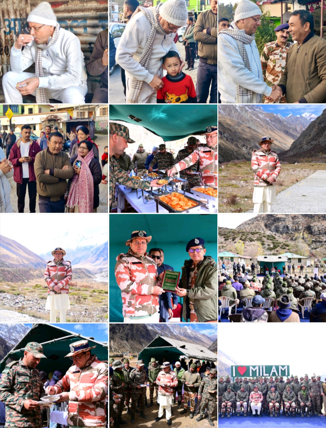 पिथौरागढ़ 29 अक्टूबर । मुख्यमंत्री श्री पुष्कर सिंह धामी ने बुधवार को पिथौरागढ़ जिले के सीमांत गांव मिलम का दौरा किया। इस अवसर पर उन्होंने भारत-तिब्बत सीमा पुलिस के जवानों से मुलाकात कर उनके राष्ट्रसेवा के जज्बे और कठिन भौगोलिक परिस्थितियों में भी समर्पण भाव से किए जा रहे कार्यों की सराहना की। मुख्यमंत्री ने कहा कि देश की सुरक्षा और सीमाओं की रक्षा में जवानों का योगदान अतुलनीय है और उनका अनुशासन, परिश्रम एवं देशभक्ति सभी के लिए प्रेरणास्रोत है।