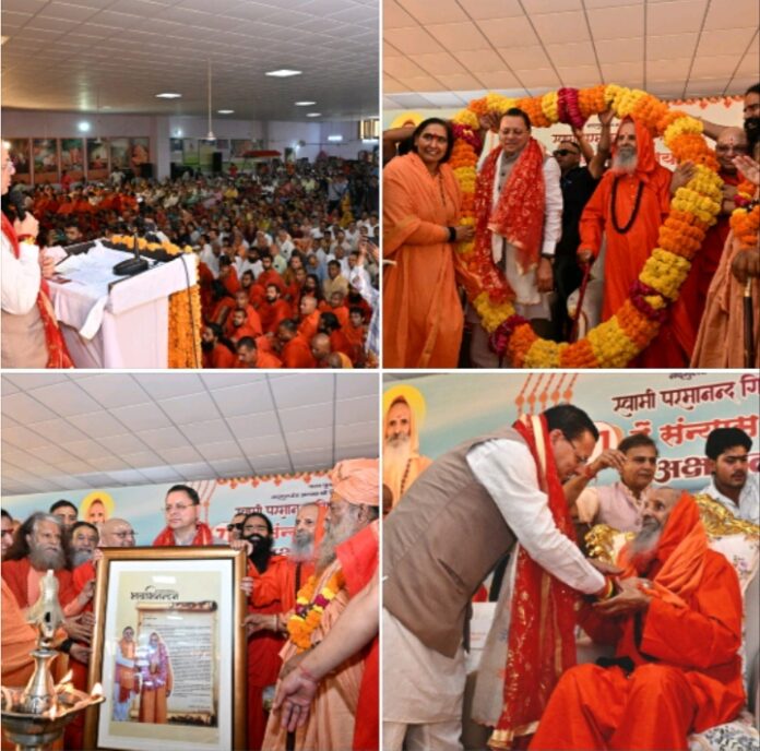 हरिद्वार 19 अप्रैल। मुख्यमंत्री श्री पुष्कर सिंह धामी ने अक्षय तृतीया के पावन अवसर पर आयोजित श्री अखण्ड परमधाम गंगा घाट के लोकार्पण समारोह एवं स्वामी परमानन्द गिरि जी महाराज की 71वीं संन्यास जयंती के उपलक्ष्य में आयोजित कार्यक्रम में प्रतिभाग किया।