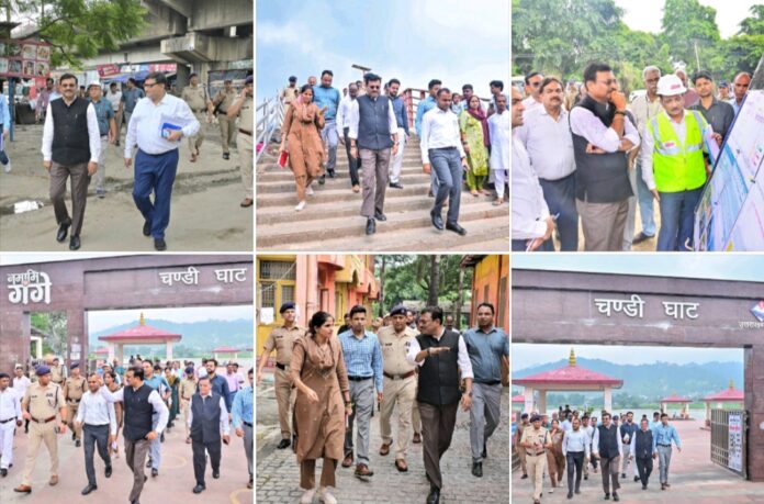 इस अवसर पर मुख्य सचिव एवं संबंधित अधिकारियों द्वारा नजीबाबाद हाईवे पर गौरी पार्किंग स्थल में मल्टी मॉडल हब बनाये जाने हेतु कार्य का निरीक्षण, चण्डी देवी मन्दिर तक रोपवे का निर्माण हेतु स्थलीय निरीक्षण,दिव्य प्रेम मिशन आश्रम के समीप नीलधारा में कल्चरल हब के निर्माण की योजना कार्य का निरीक्षण,नमामिः गंगे घाट नीलधारा में लेजर शो हेतु स्थिल निर्माण की योजना का निरीक्षण,बैरागी कैम्प क्षेत्र में विभिन्न अखाड़ों एवं धार्मिक संस्थाओं के कैम्पिंग की योजना का निरीक्षण, बैरागी कैम्प क्षेत्र, दक्षद्वीप क्षेत्र में मायापुर स्कैप चैनल के दोनो 15 और नये घाटों के निर्माण कार्य की योजना का निरीक्षण,आईरीस सेतु से श्री यंत्र मन्दिर होते हुए मातृ सदन तक मार्ग के सुदृढ़ीकरण योजना का एवं उक्त मार्ग के मध्य 700 से 800 मी0 की कच्ची सड़क को पक्की सड़क बनाने जाने की योजना कार्य का निरीक्षण,नक्षत्र वाटिका के समीप कनखल ऐरिया कैनाल फ्रन्ट डेवलपमेन्ट योजना जिसके अन्तर्गत नक्षत्र वाटिका के पास पार्किंग ऐरिया, लैण्ड स्कैपिंग, पैदल स्थाई पुल चौड़ाई 7.0 मी0 (01 पुल दक्ष मन्दिर को जोडने हेतु एवं 01 पुल बैरागी क्षेत्र से सतीघाट को जोड़ने हेतु) कार्य का निरीक्षण, शमशान घाट कनखल के सामने 01 नग अतिरिक्त स्थाई सेतु के निर्माण कार्य का निरीक्षण,आनन्दमयी पुलिया से जान्ह्वी डेल होटल तक सिल्टइजैक्टर के ऊपर सड़क निर्माण की योजना कार्य का निरीक्षण,आनन्दमयी पुलिया से झंडा चौक कनखल है होते दक्ष मन्दिर मार्ग का निरीक्षण एवं झंडा चौक कनखल के चौड़ीकरण कार्य का निरीक्षण,भीमगोड़ा स्थित खड़खड़ी शमशान घाट को चमगाद्ध टापू से जोड़ने हेतु स्थाई सेतु निर्माण कार्य का निरीक्षण एवं हरकी पैड़ी क्षेत्र का निरीक्षण किया।