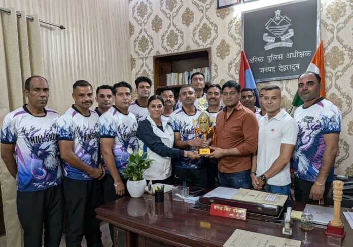 विजेता टीम द्वारा दिनांक: 15-04-24 को वरिष्ठ पुलिस अधीक्षक देहरादून से शिष्टाचार भेंट की गई। वरिष्ठ पुलिस अधीक्षक देहरादून द्वारा पूरी टीम के स्वर्णिम प्रर्दशन पर उन्हें बधाई देते हुए उनके उज्जवल भविष्य का कामना की, साथ ही टीम के सभी सदस्यों ( 01: टीम मैनेजर: अ0उ0नि0 विजय चौधरी